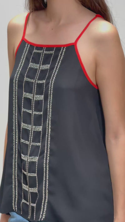 Blusa de tirante, bordada con pedrería al frente y espalda