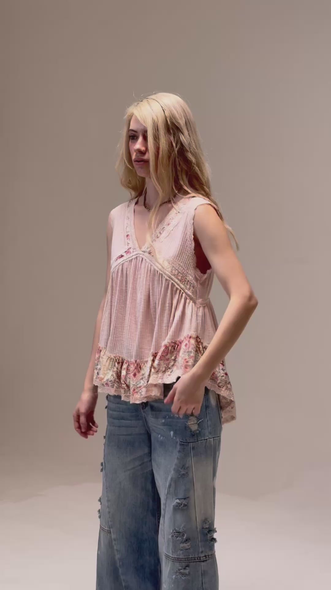 Blusa de algodón de manga corta, escote en V .