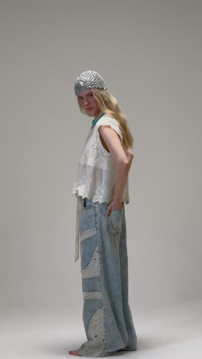 Blusa. de algodón con juego de tela tejido.