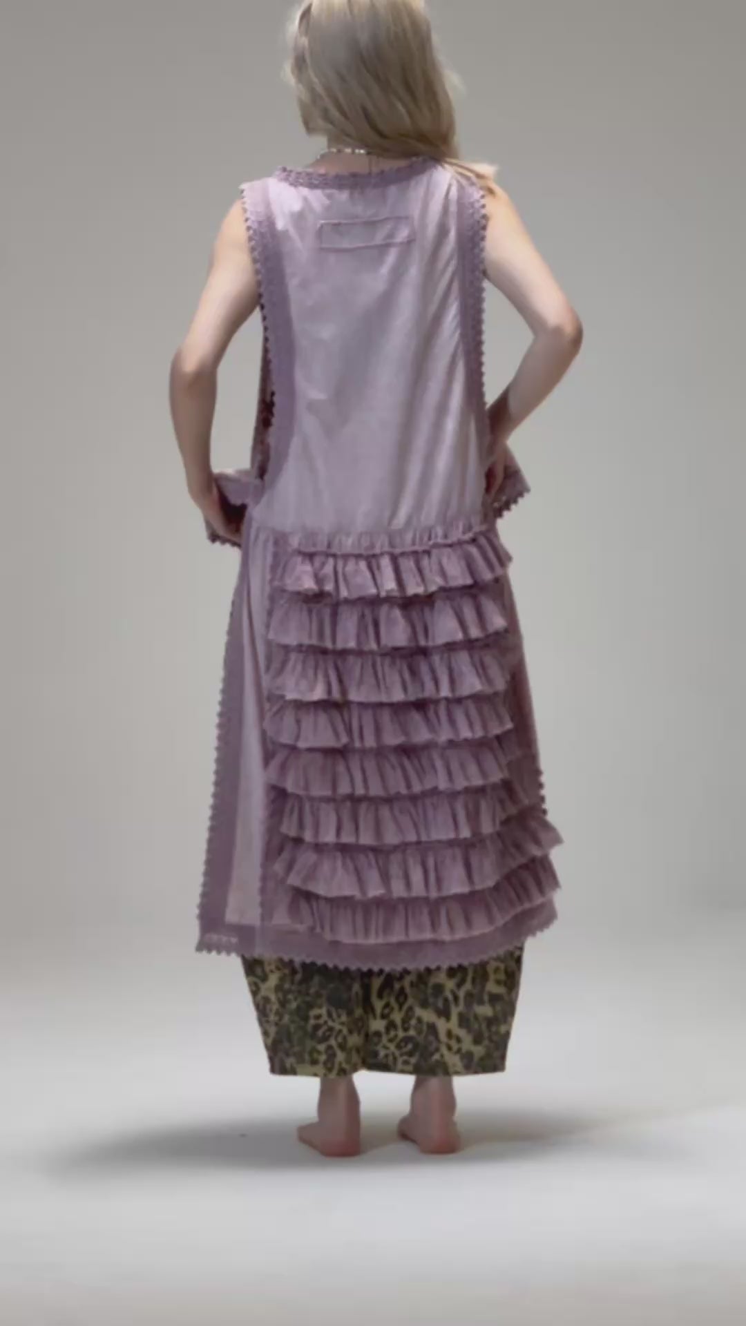 Blusa de algodón con corte largo en la trasera y diseño de olanes.