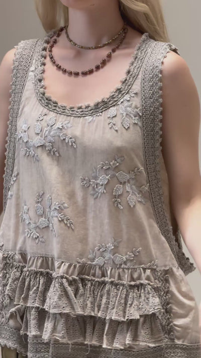 Blusa de algodón con corte largo en la parte trasera y diseño de olanes.