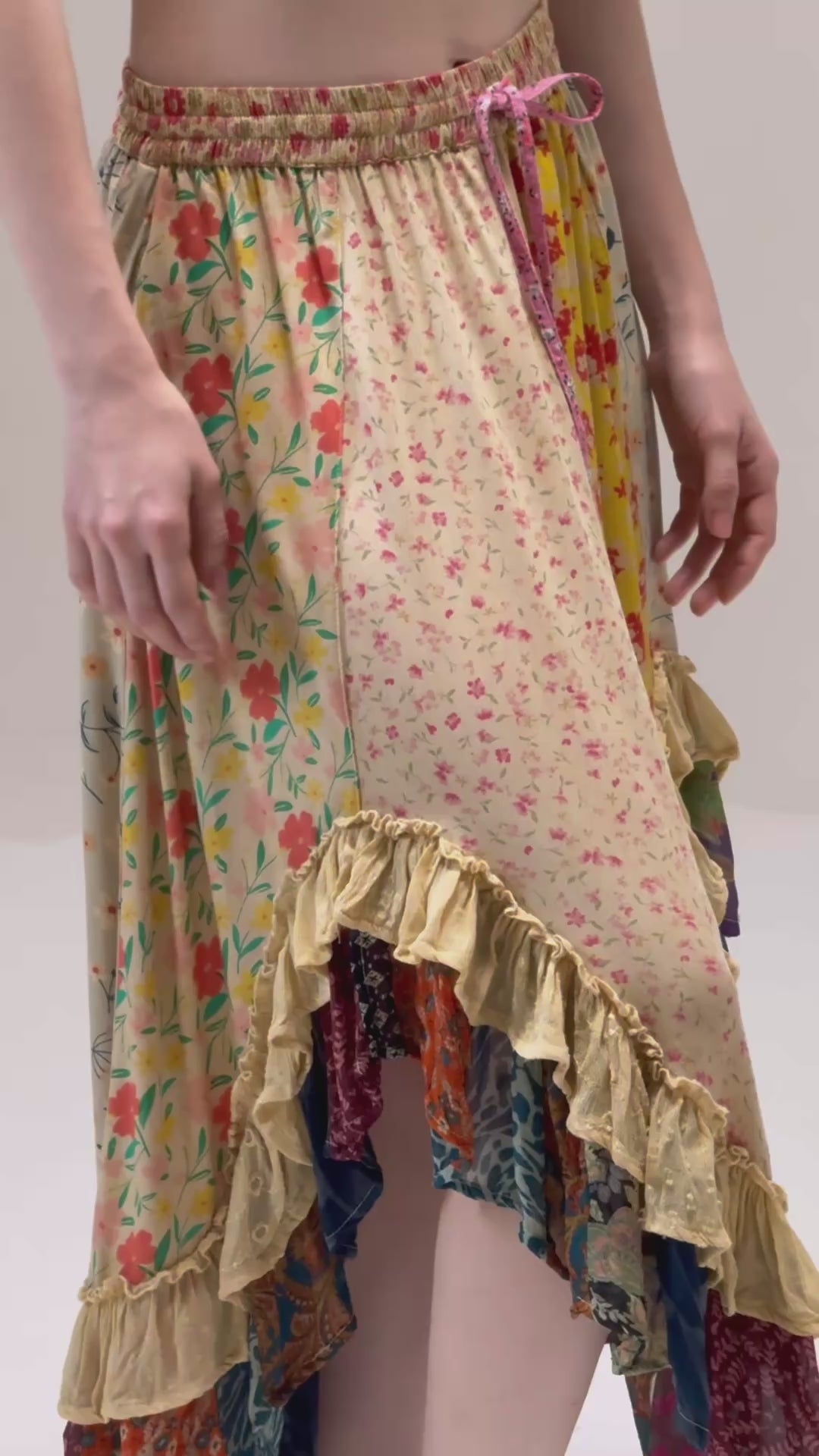 Falda en juego de telas, resorte en la cintura con corte irregular en parte baja