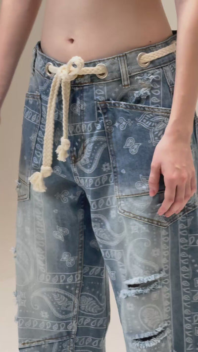 Pantalón de mezclilla estampado con cuerda en la pretina