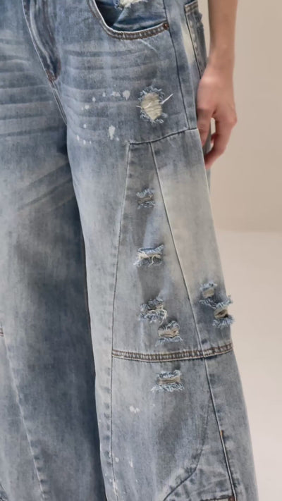 Pantalón de mezclilla en corte A con juego de tela de mezclilla