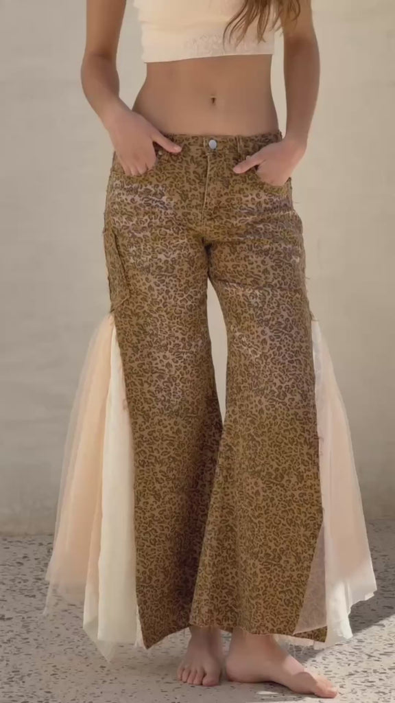 Pantalo de animal print con un juego de telas en tul en parte baja