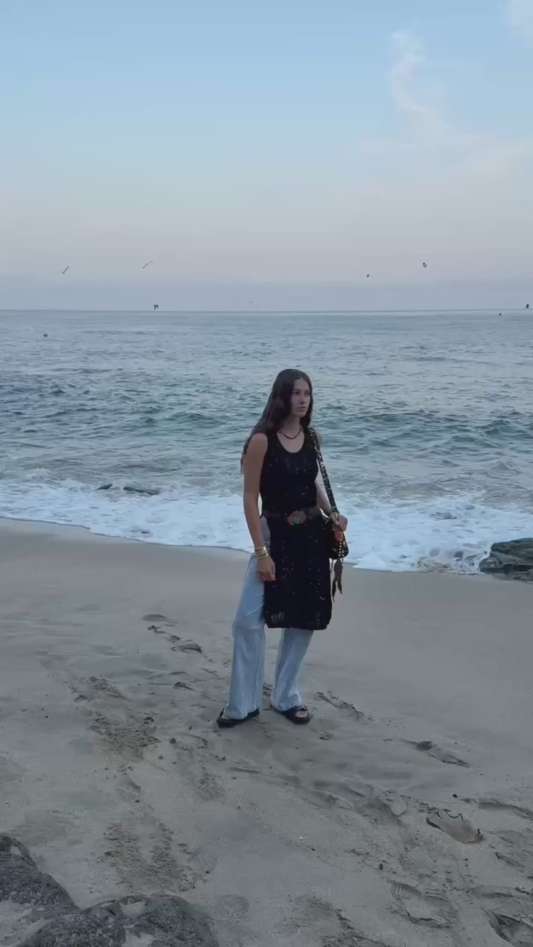 Vestido de crochet con lentejuela, blusón sobre puesto